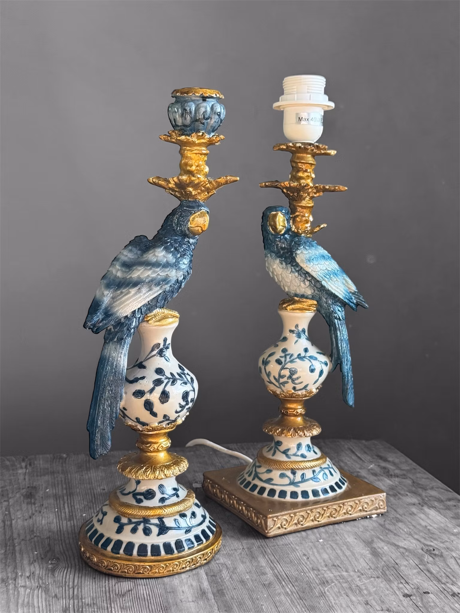 Härlig blå papegojlampfot. Matcha med retro lampskärm i guldgul.