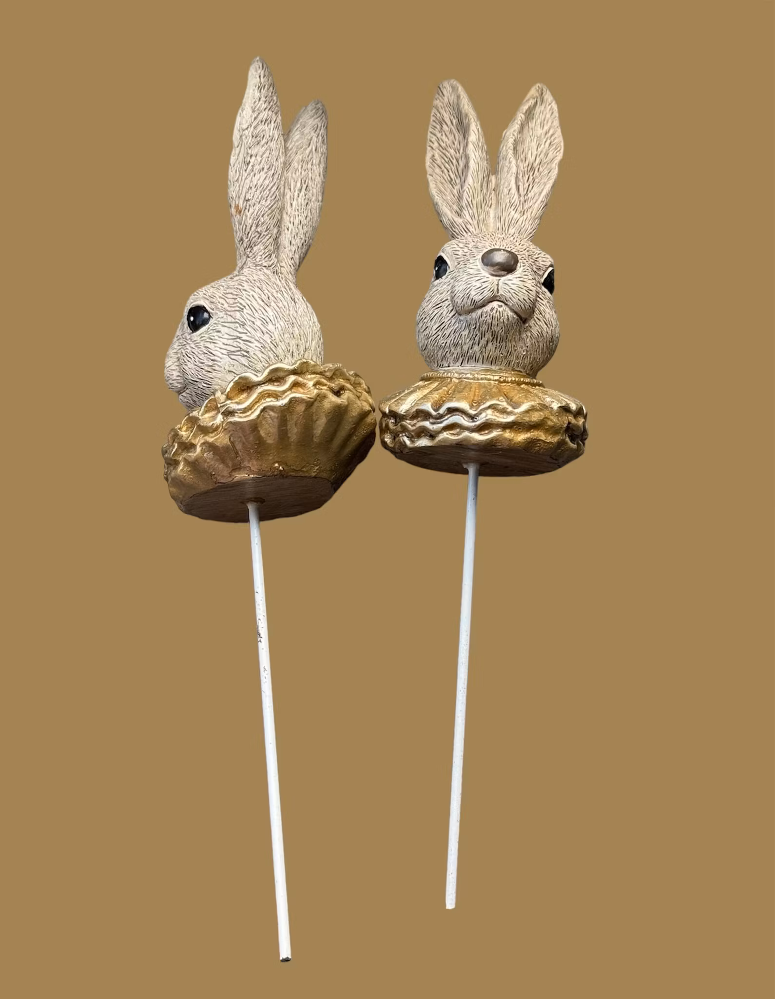 Kaninhuvud med guldkrage 2-pack blomstersticka 20 cm